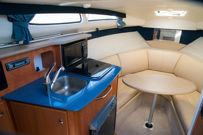 Ce bateau habitable offre 4 couchages, idéal pour les sorties en famille ou entre amis.